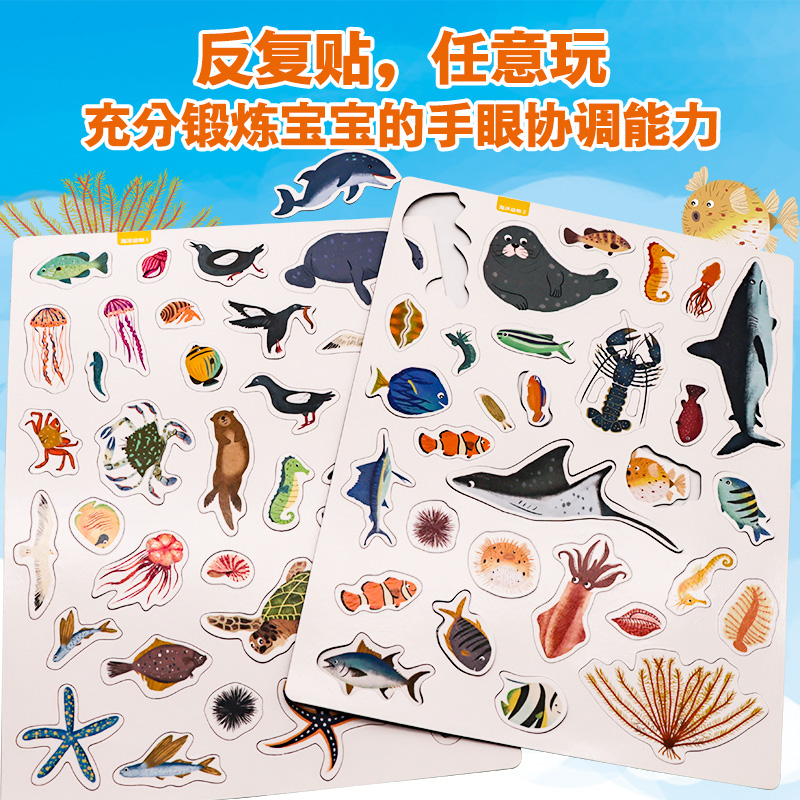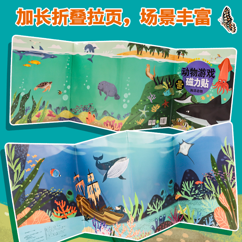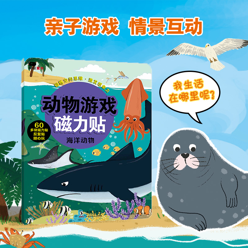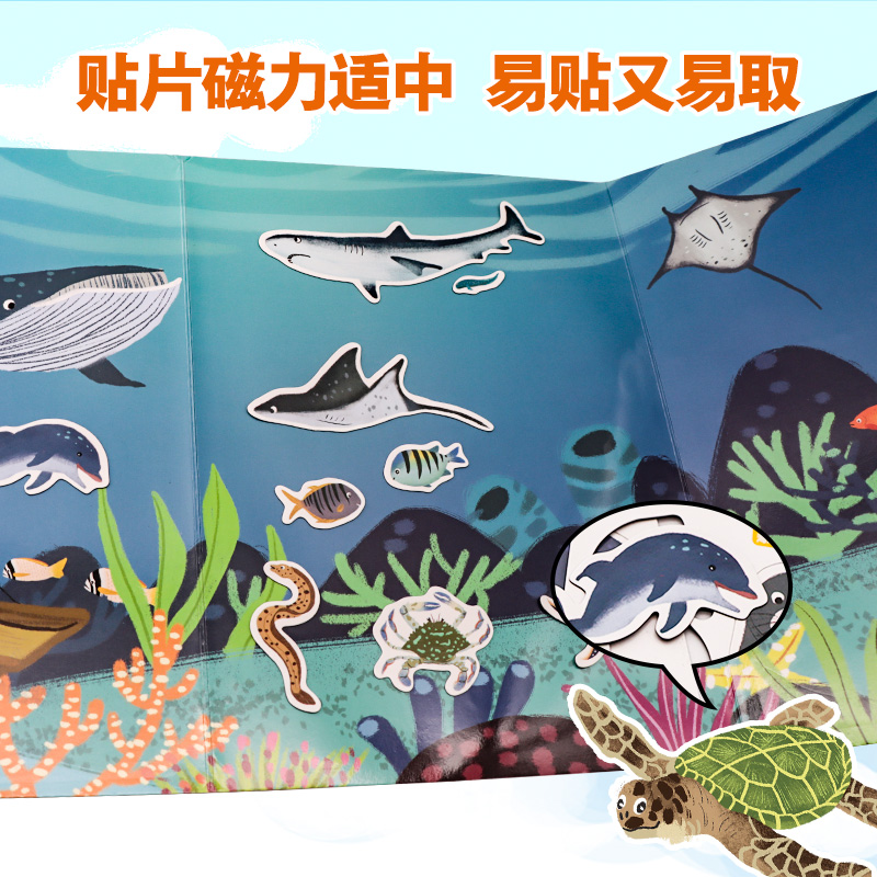反复贴 60多块磁力贴 随心玩 激发想象力 邦臣小红花动物游戏磁力贴海洋动物儿童益智认知游戏书籍专注观察力锻炼空间思维