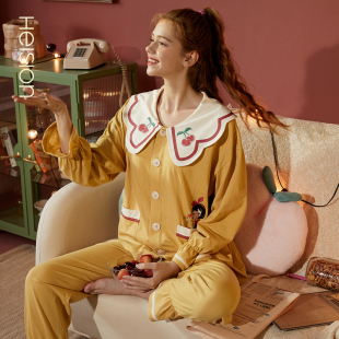 家居服套装 芬腾纯棉睡衣女长袖 甜美2025新款 女生秋季 可外穿 春秋款