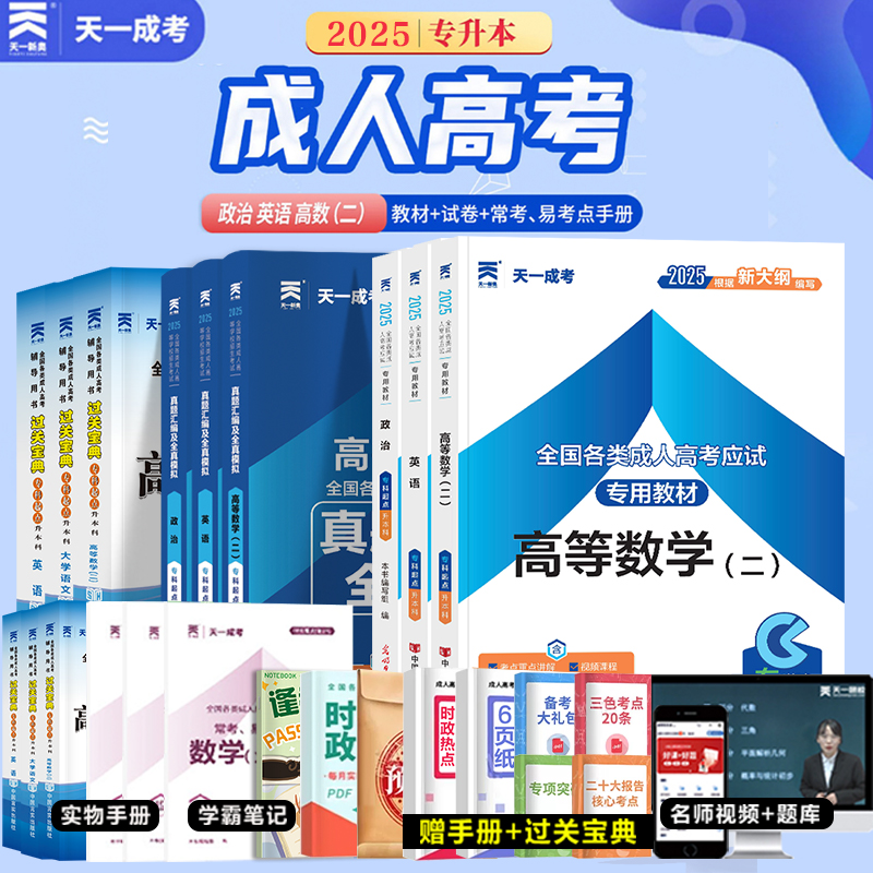 天一成考专升本复习资料2025自学考试成人高考专升本教材政治医学综合语文英语高等数学二民法教育理论历年真题试卷题库自考专升本