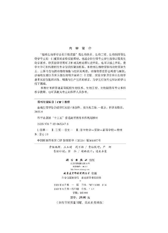社 史冬燕科学出版 基础生物学综合设计性实验 宋新华