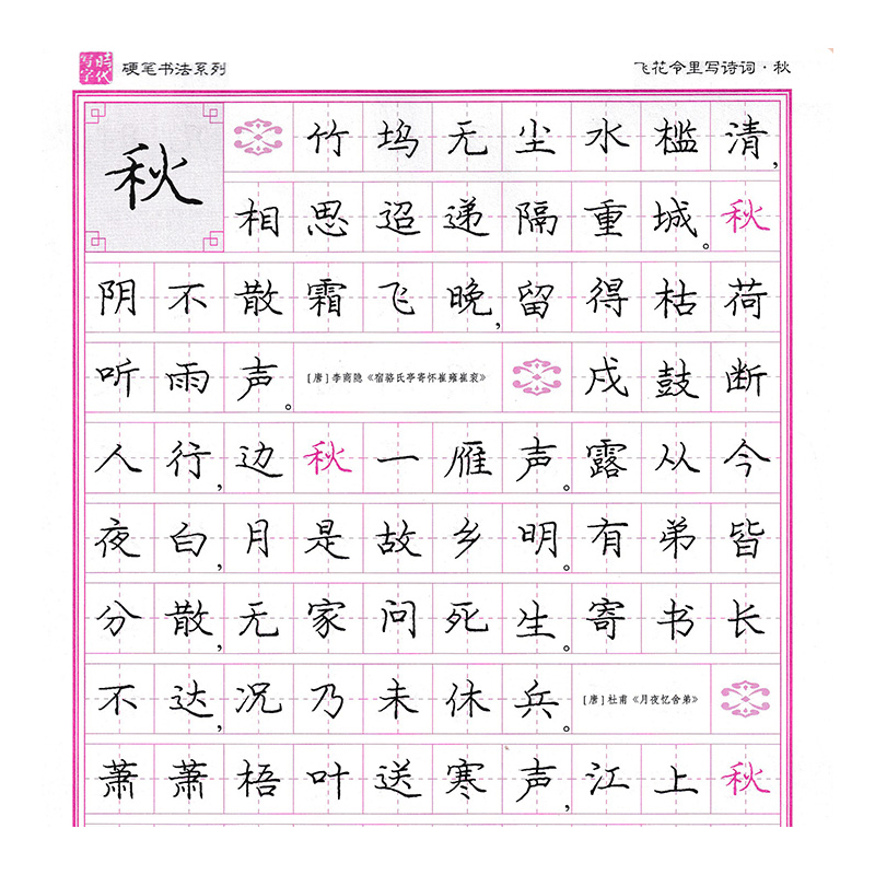 以诗词细磨笔画行好令锦绣文章 庞中华楷书练字帖 楷书临摹字帖 秋红叶散愁孤凉夕 高中小学课外楷书练字帖 飞花令里写诗词
