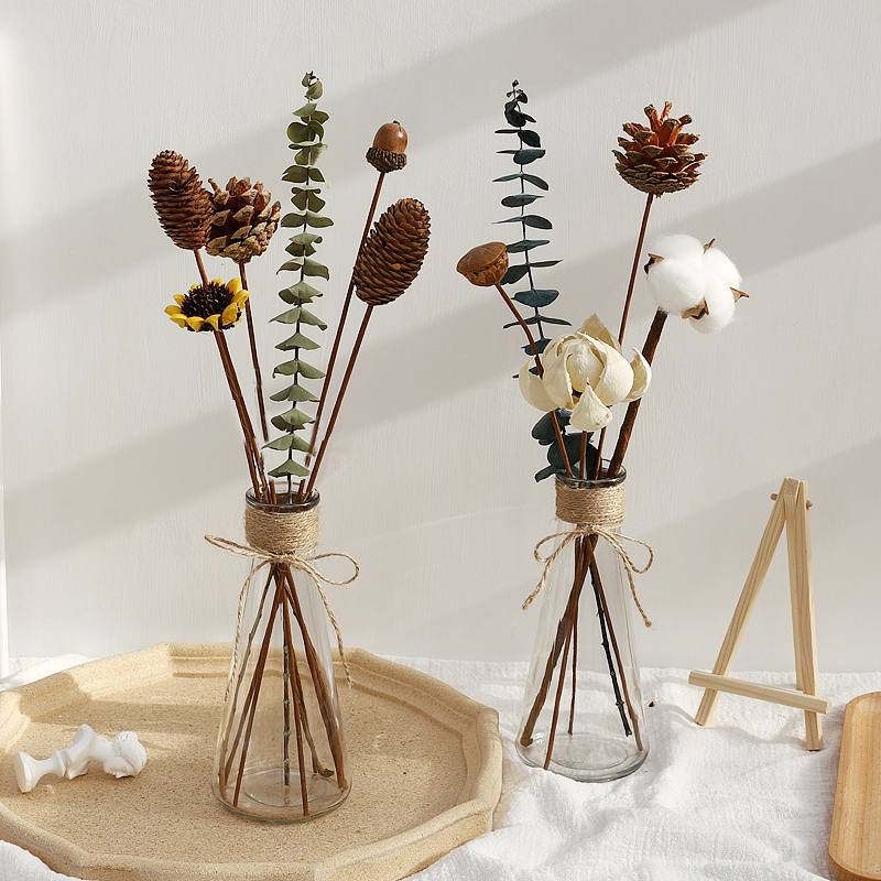 ins永生真花干花束风干天然小雏菊木棉尤加利叶客厅摆设装 饰摆件