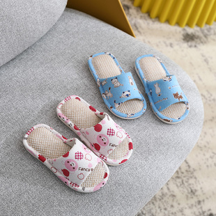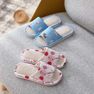 儿童拖鞋 棉麻布艺室内男童女童小孩家用亚麻家居家春秋冬宝宝防滑