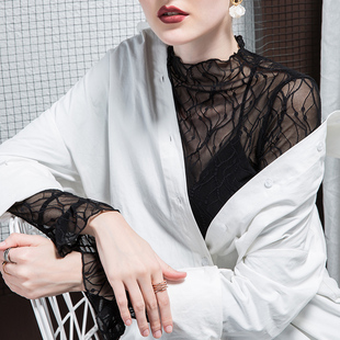 新款 喇叭袖 蕾丝打底衫 半高领性感洋气内搭网纱小衫 女修身 2025秋季