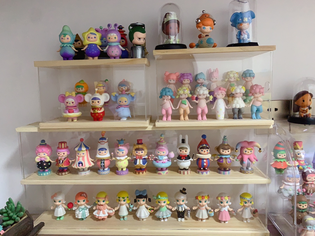 原木亚克力展示盒泡泡玛特茉莉娃娃手办防尘罩Molly盲盒收纳盒架