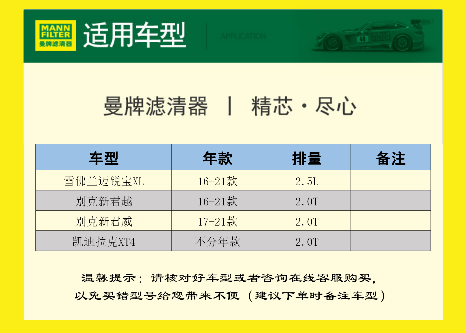 凯迪拉克XT4 机滤空滤空调滤 迈锐宝XL新君威君越2.0T曼牌三滤套装