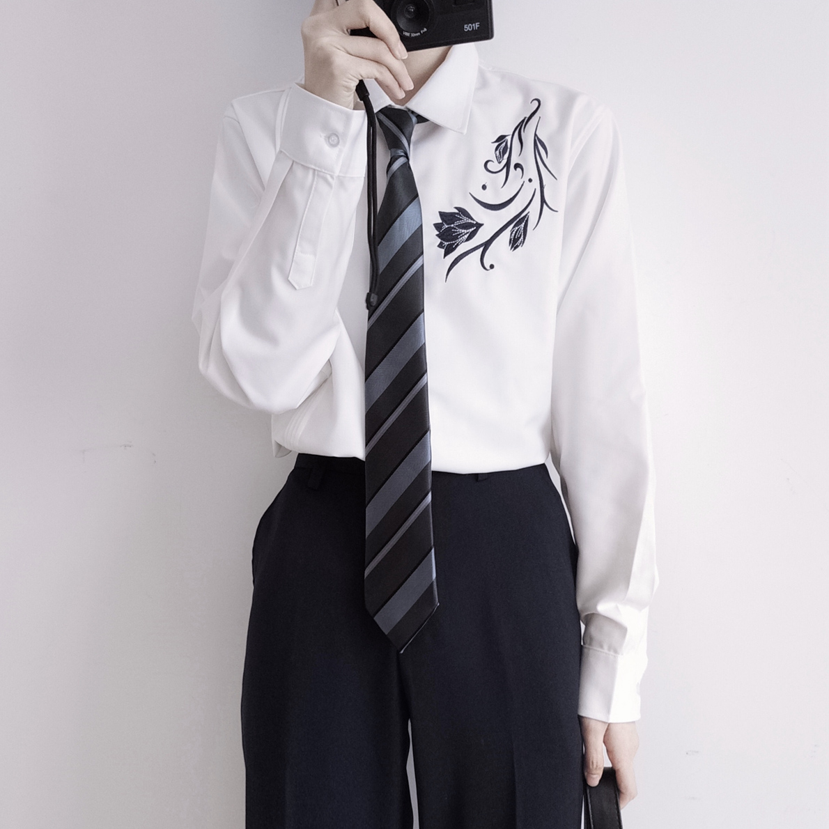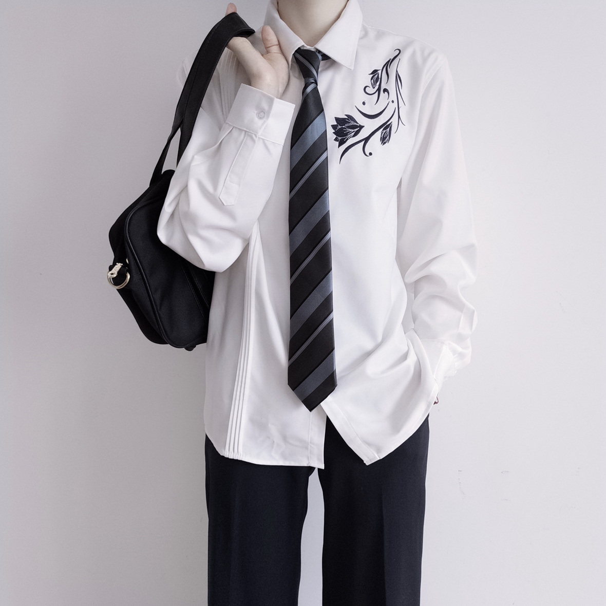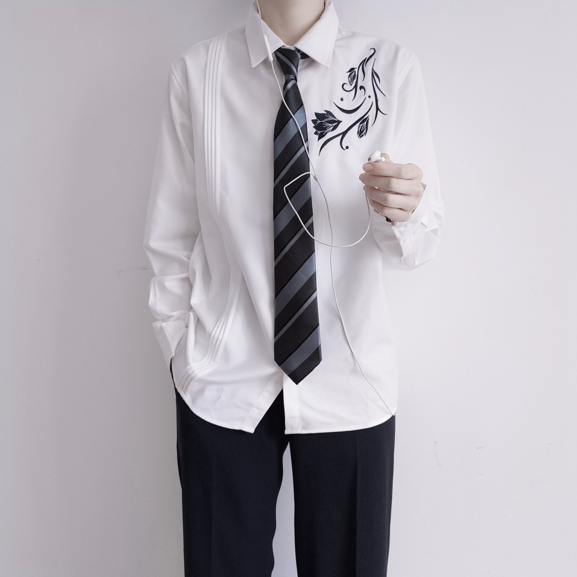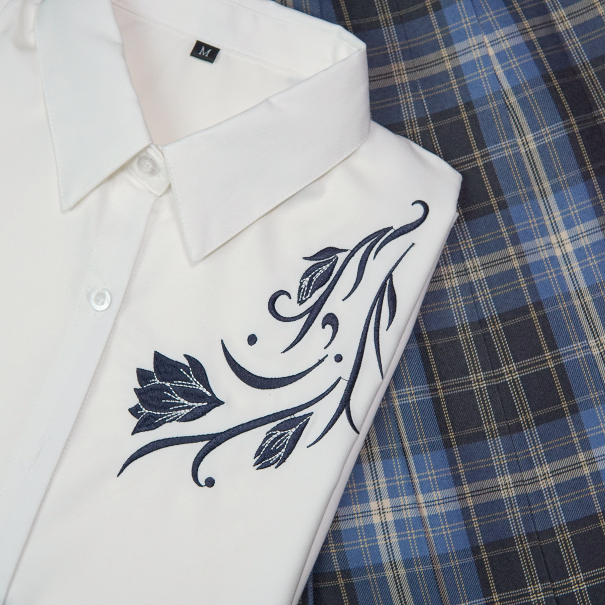 刺篇 衬衫 弋华川jk 素长袖 男女 dk制服国风绣花深蓝刺绣汉元