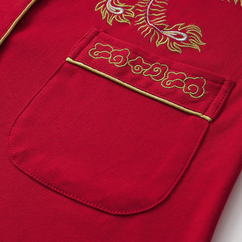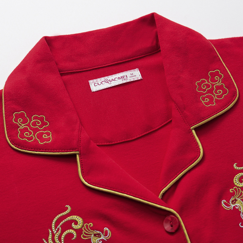 家居服套装 春秋款 本命年凤绣花喜庆红色睡衣女中国风纯棉长袖 新款
