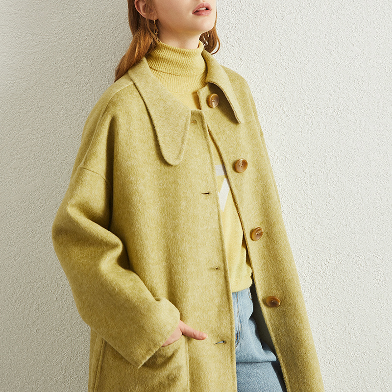 RUISHI芮时 重磅驼绒桑蚕丝羊毛慵懒两穿领毛呢大衣女秋冬外套女