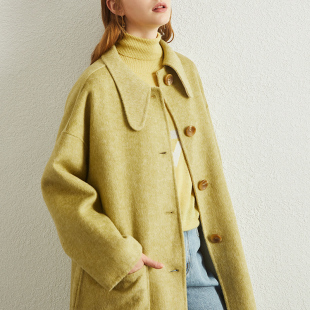 新款 2025冬季 秋水伊人优雅翻领毛呢外套 通勤大衣 100%绵羊毛