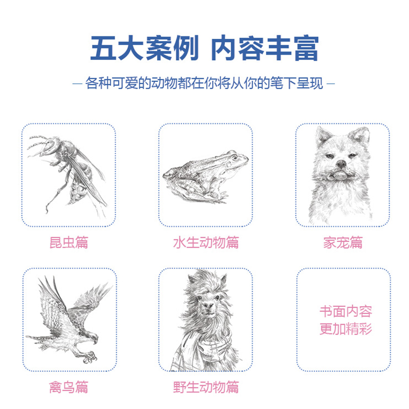 兴趣学素描动物 零基础入门美术绘画教程书临摹范本铅笔手绘画册照片对画简单精微自学技法猫猫狗生活兴趣教材教学初学者祁达书籍