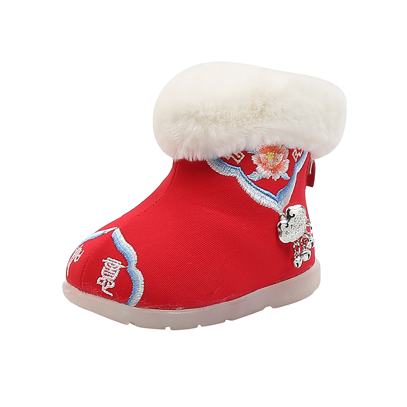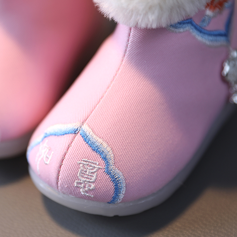 加绒加厚汉服绣花鞋 冬季 女童布鞋 拜年鞋 宝宝鞋 儿童周岁鞋 手工棉鞋