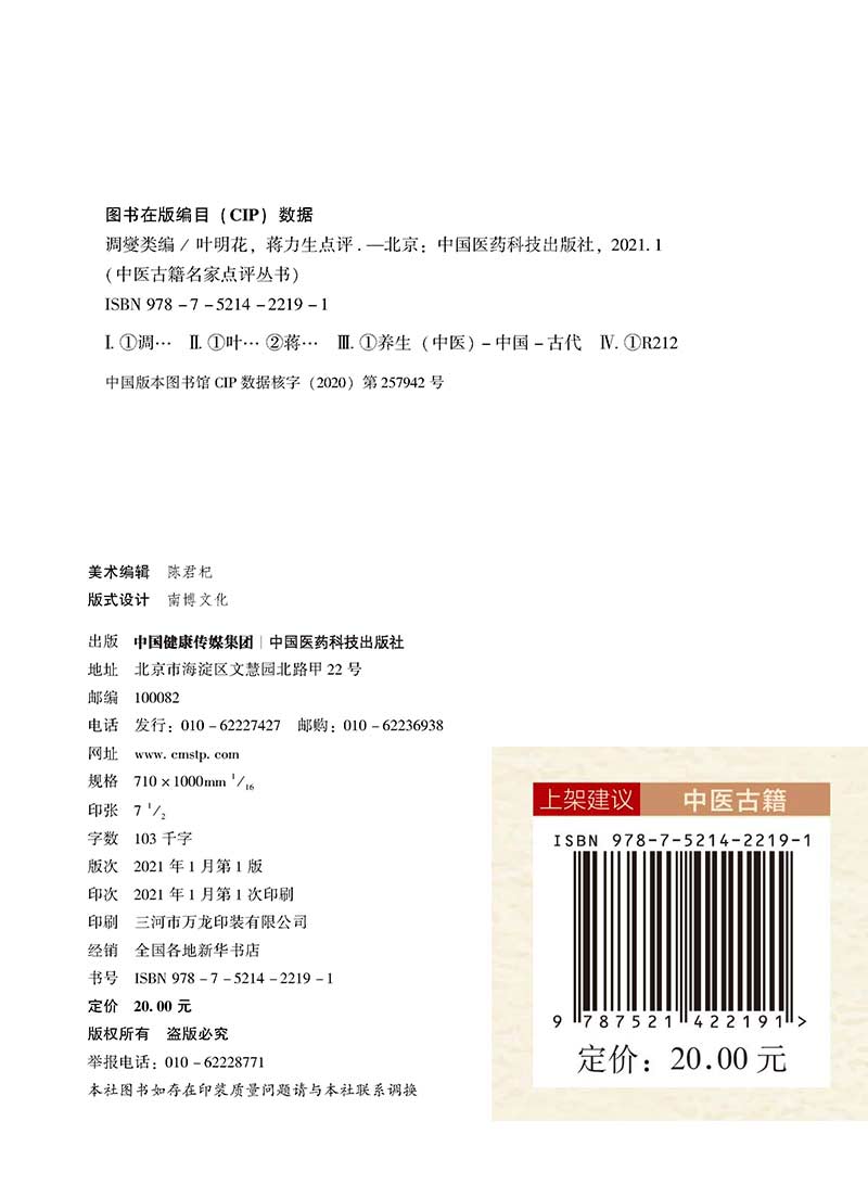 现货调燮类编中医古籍名家点评丛书中国医药科技出版 社9787521422191