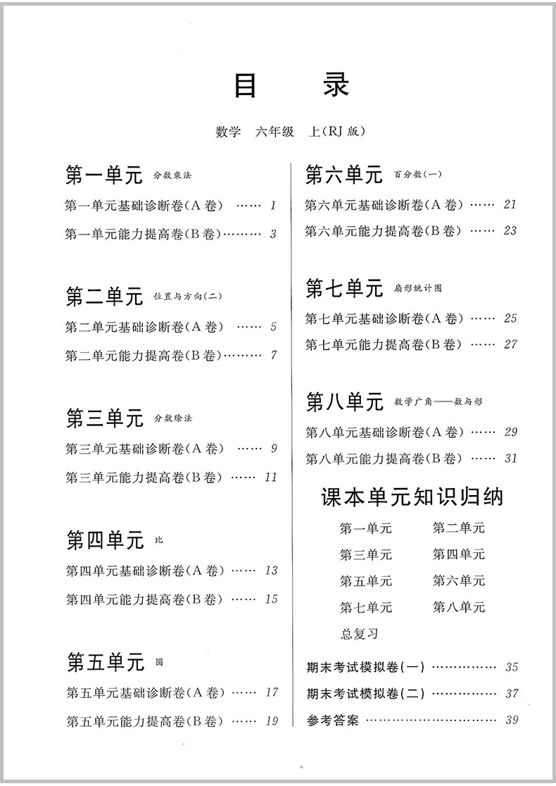 六年级上册 评估AB卷 数学 人教版 期中期末课堂冲刺检测复习试卷辅导书 2020秋 小学6年级课时同步训练测试卷资料练习题单元 单元