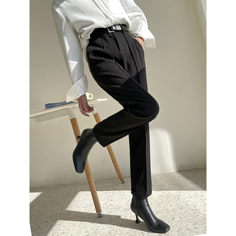 九分烟管小个子小脚哈伦裤 女2025年春秋新款 裤 黑色高腰萝卜西装