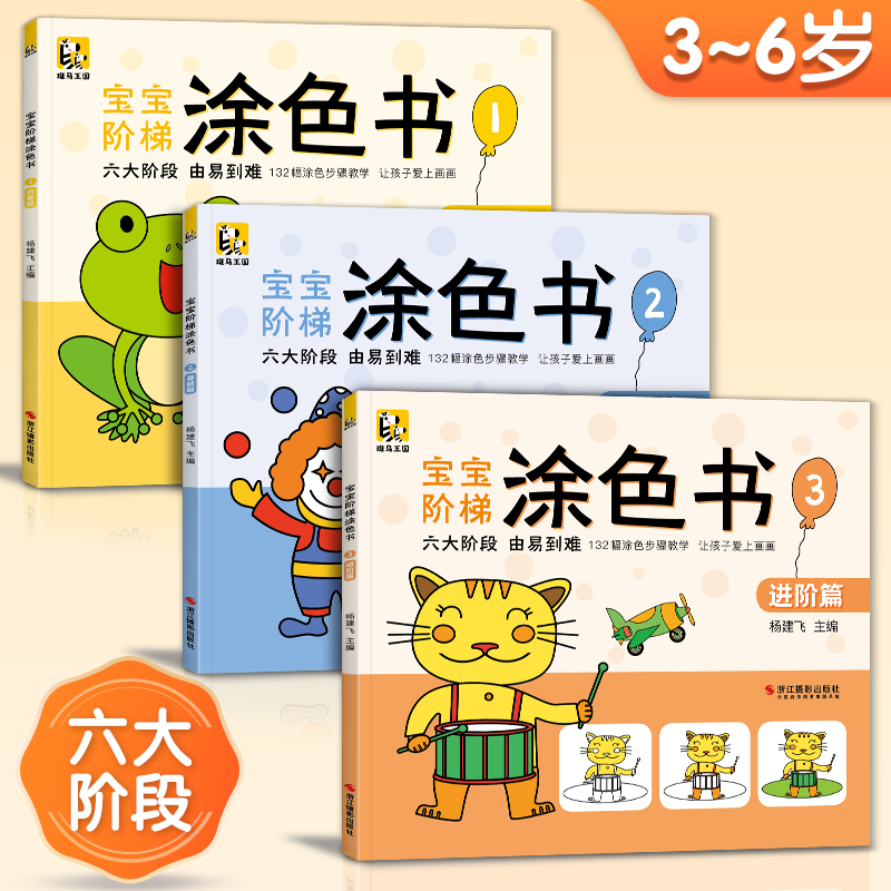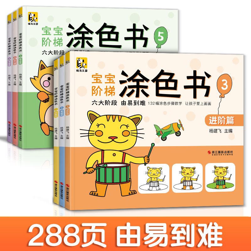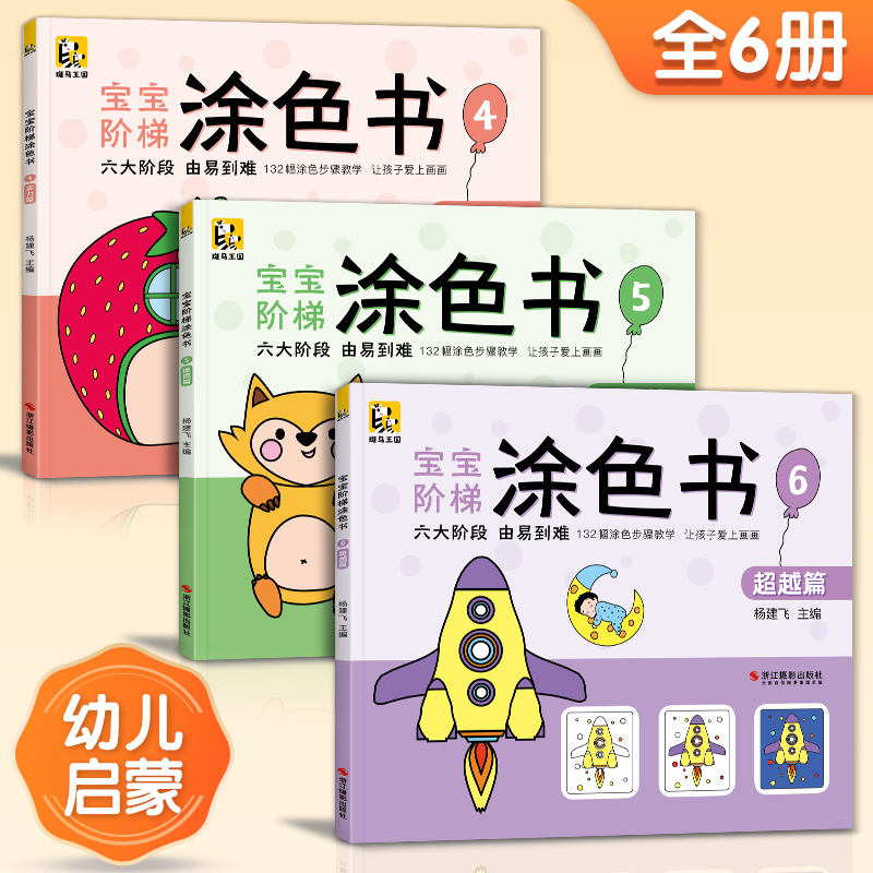 斑马王国 从易到难启蒙益智涂色画幼儿园小孩阶梯涂色书3 6本装 7岁绘画册儿童涂鸦填色本宝宝学画画本 宝宝阶梯涂色书