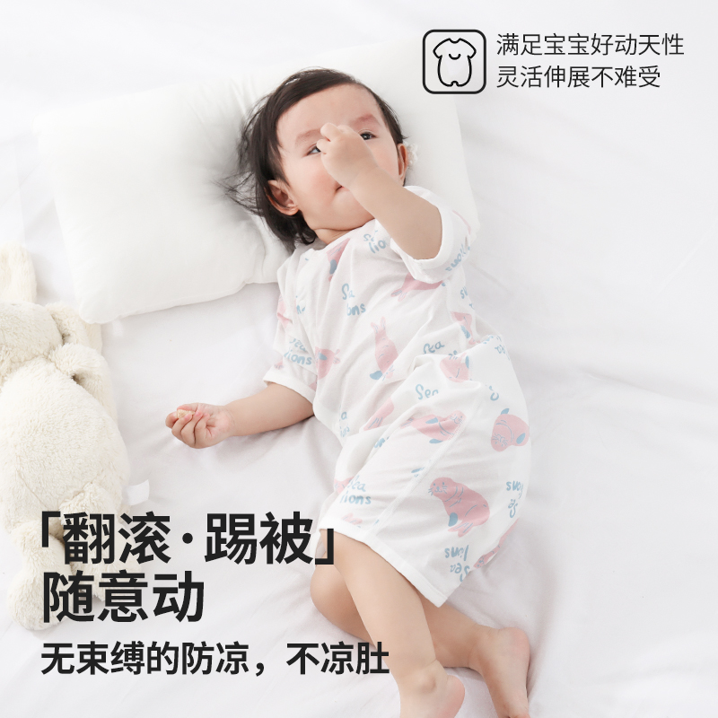 男女童家居服宝宝睡衣夏 妙贝亲婴儿睡袍春纯棉七分袖 2件5折