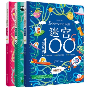 儿童迷宫益智书 9岁益智书迷宫大探险书迷宫游戏书 神秘恐龙 儿童迷宫书 3册 勇敢公主 汽车 5分钟专注力训练迷宫100 正版