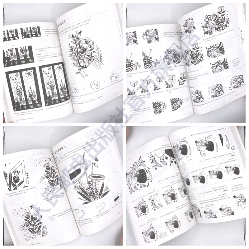 饰画黑白图案设计艺术临摹绘画技法素描教程自学书籍 零基础手绘插画入门教程创意绘画装 黑白灰装 饰画入门与创作技法教程