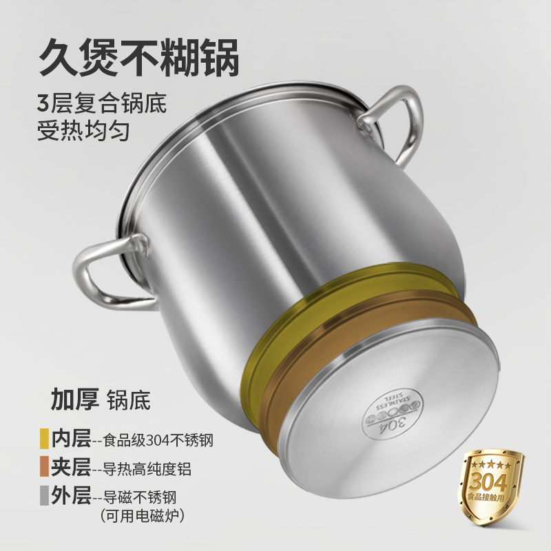 高汤锅304不锈钢锅家用加厚大容量煲汤煮粥炖锅电磁炉专用煮锅