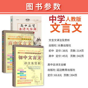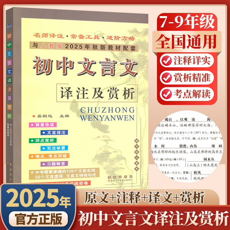 2025初中文言文译注及赏析人教版 语文同步课文教材配套七八九年级初中生文言文全解一本通通用高中文言文全解大全集翻译书助读