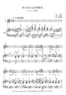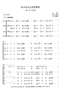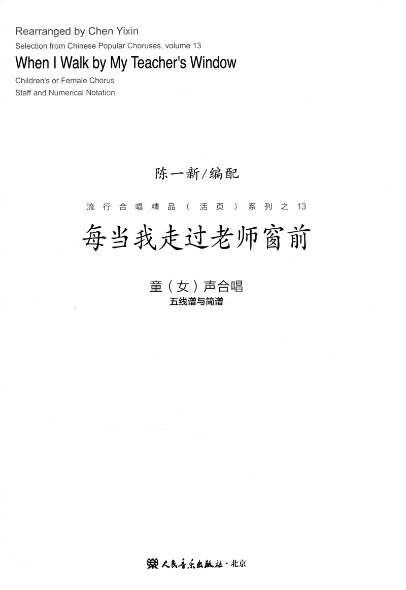 流行合唱精品活页系列 声乐曲谱乐谱书籍 附1MP3 社 人民音乐出版 陈一新 声合唱五线谱与简谱 女 童 每当我走过老师窗前 正版