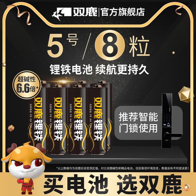包邮 双鹿5号锂铁电池AA 锁智能门锁指纹锁电池五号无汞防漏液强电量多省 FR14505锂电池1.5V电子锁密码 FR6