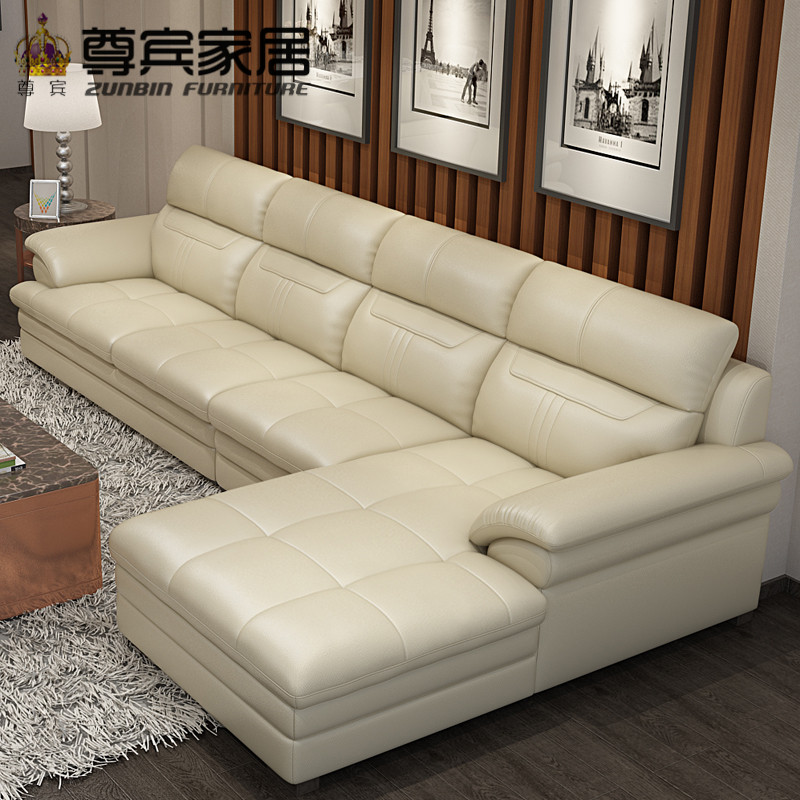 法莎蒂现代奶油风大象耳朵真皮沙发小户型意式 极简皮艺直排沙发