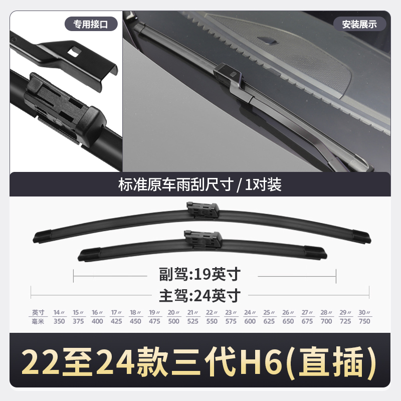 第三代哈弗H6雨刮器片原装 汽车3代三代无骨哈佛长城前雨刷条 21款