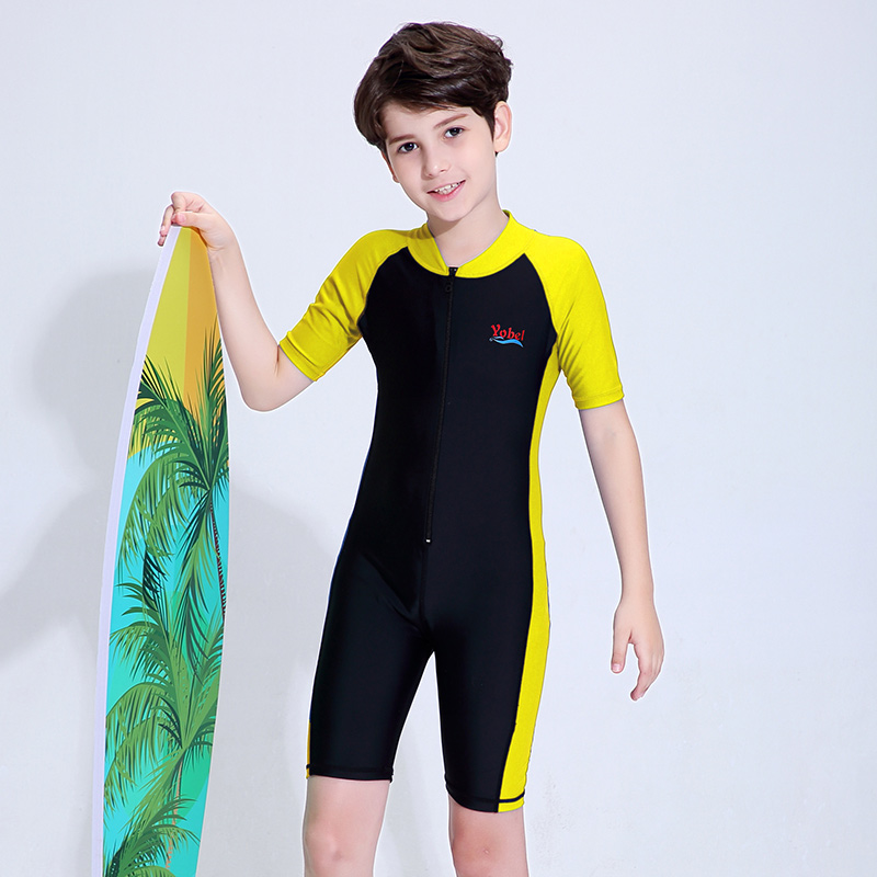 中大童宝宝少年游泳衣 学生海边防晒泳装 新款 男童连体泳衣冲浪大码