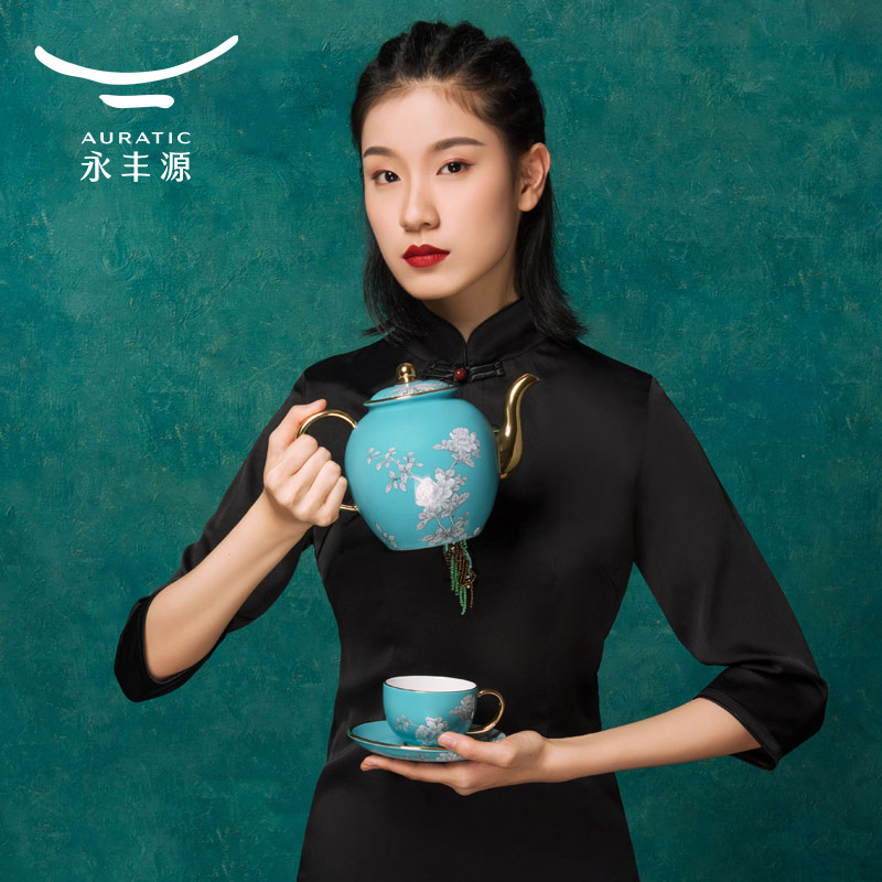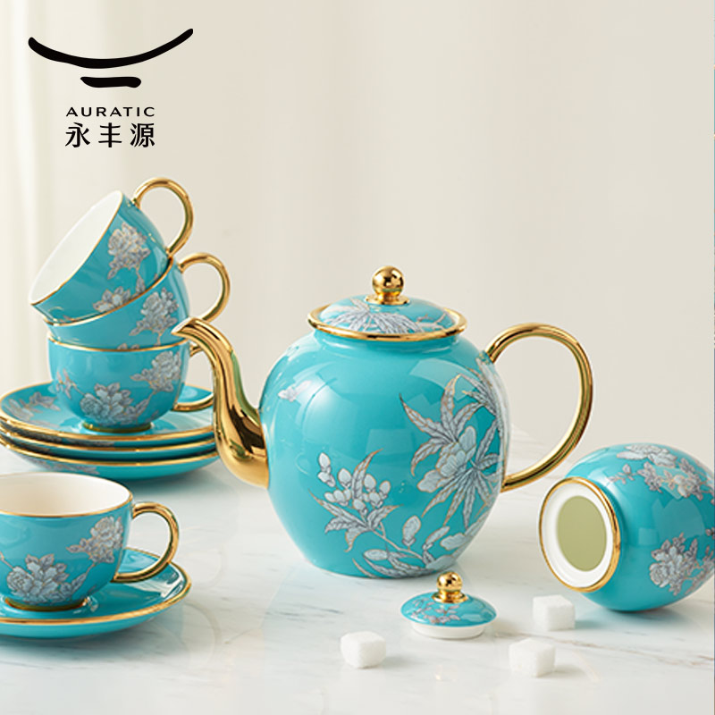 礼盒装 下午茶咖啡具茶杯碟 水墨牡丹17头陶瓷茶具套装 永丰源