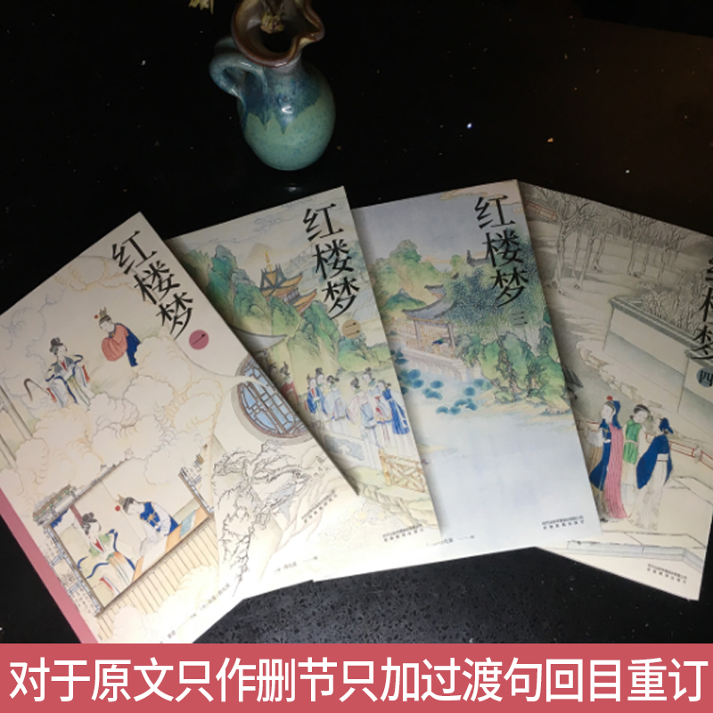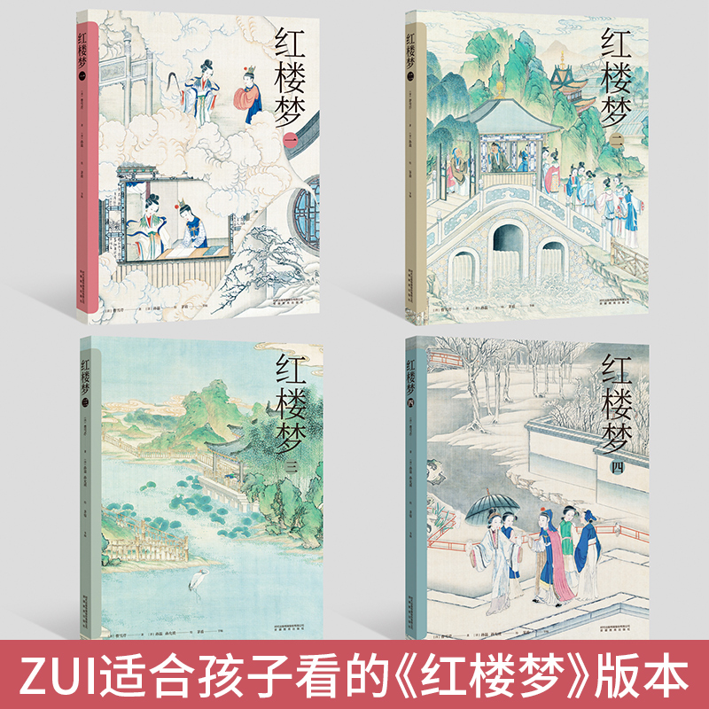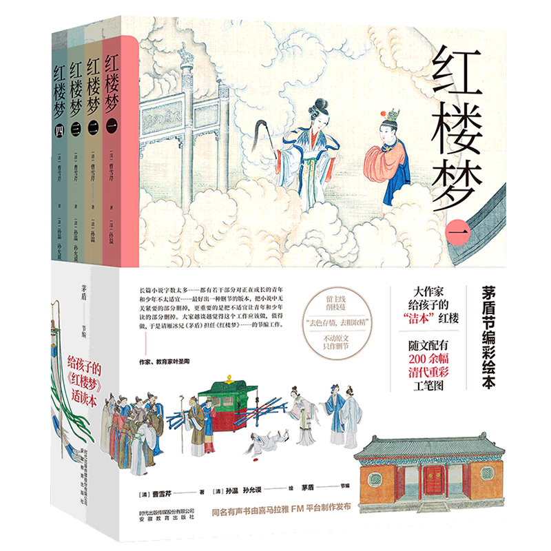 青少年无障碍阅读版 小学生适读经典 四大名著权威改编 正版 曹雪芹原著矛盾精简版 全4册 全彩插图珍藏本 红楼梦茅盾节编彩图版