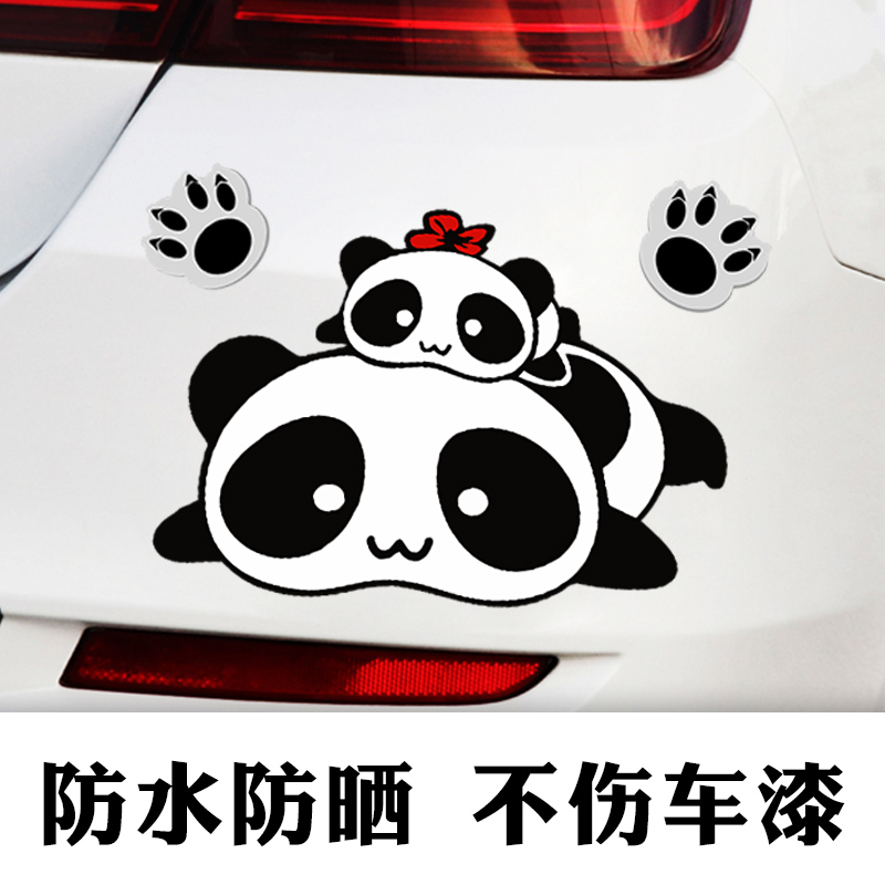 汽车车身大尺寸贴纸后保险杠遮挡划痕贴画花车子防水遮盖熊猫车贴