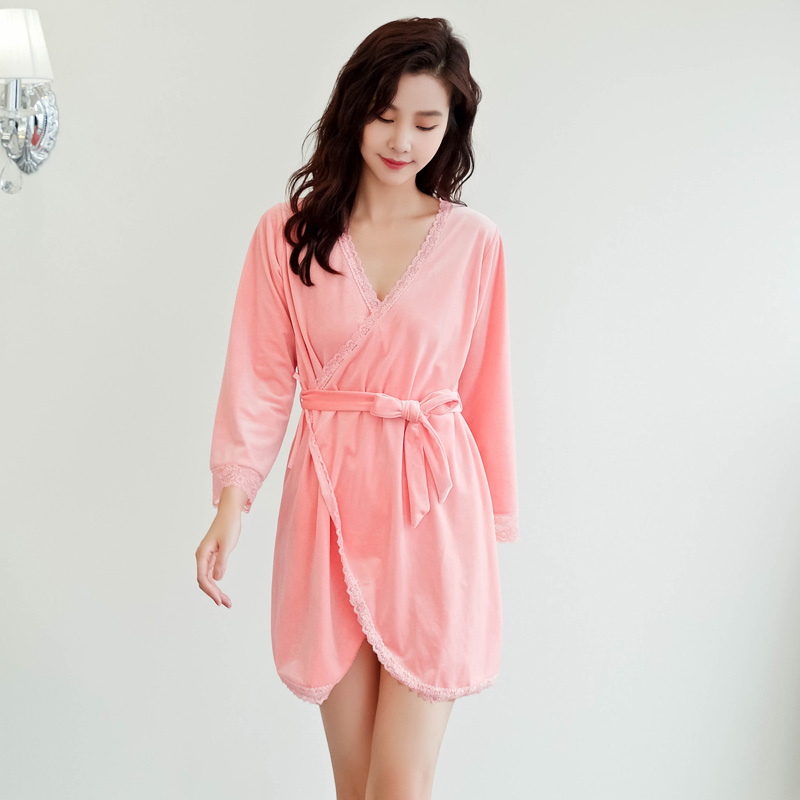 蕾丝诱惑睡袍小个子浴袍春秋 金丝绒睡裙短款 性感睡衣女秋冬季 厚款