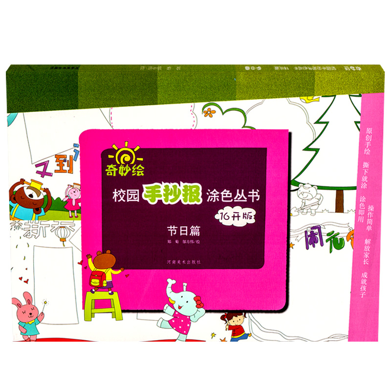 儿童创意绘画涂色书幼儿涂色涂鸦绘画小学生原创手绘手抄报空白模板黑板报设计书河南美术出版 正版 奇妙绘校园手抄报涂色丛书16开版