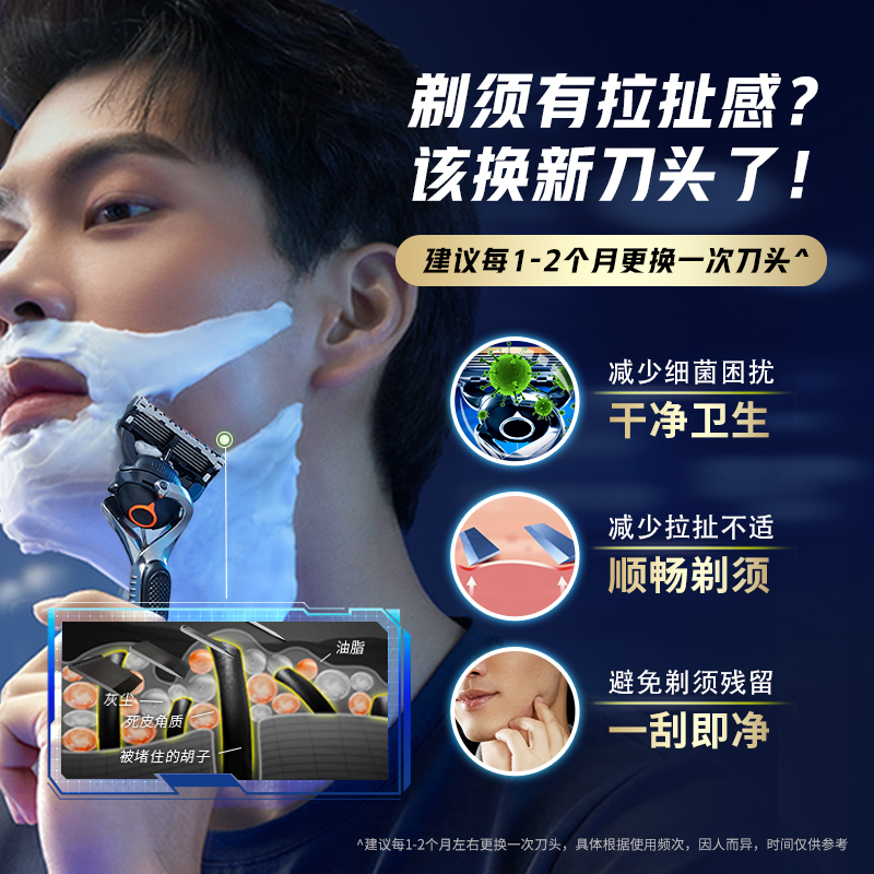 吉列锋隐致顺引力盒适配5层刀片手动剃须刀男士 刮胡刀非吉利