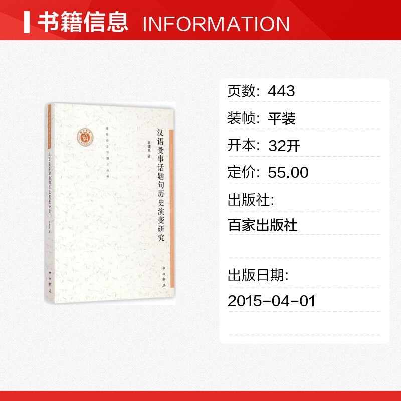 著作 著 语言文字文教 新华书店正版 中西书局 汉语受事话题句历史演变研究 图书籍 袁健惠