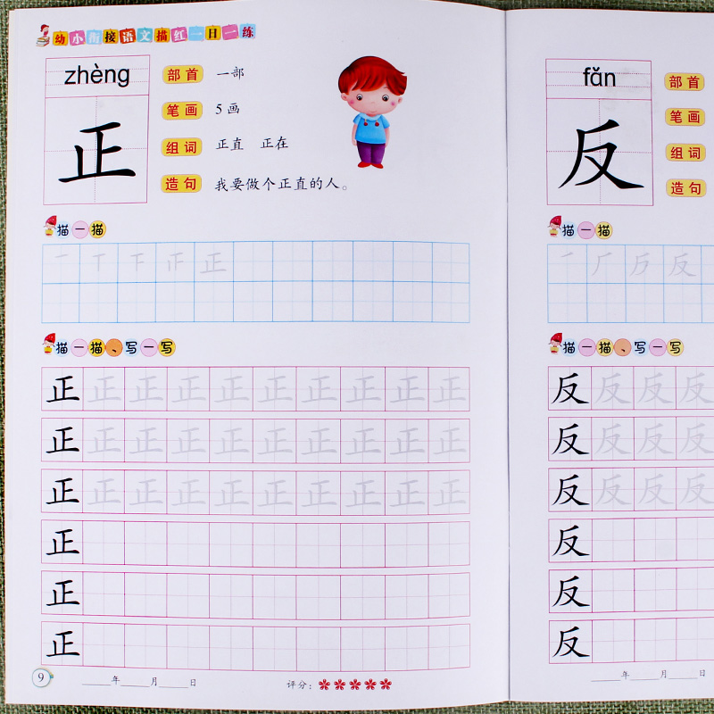 入学准备幼儿描红系列汉字描红3学前准备幼小衔接幼儿园启蒙思维专项训练一日一练轻松学习彩色配图规范书写练习册 任选4本19元