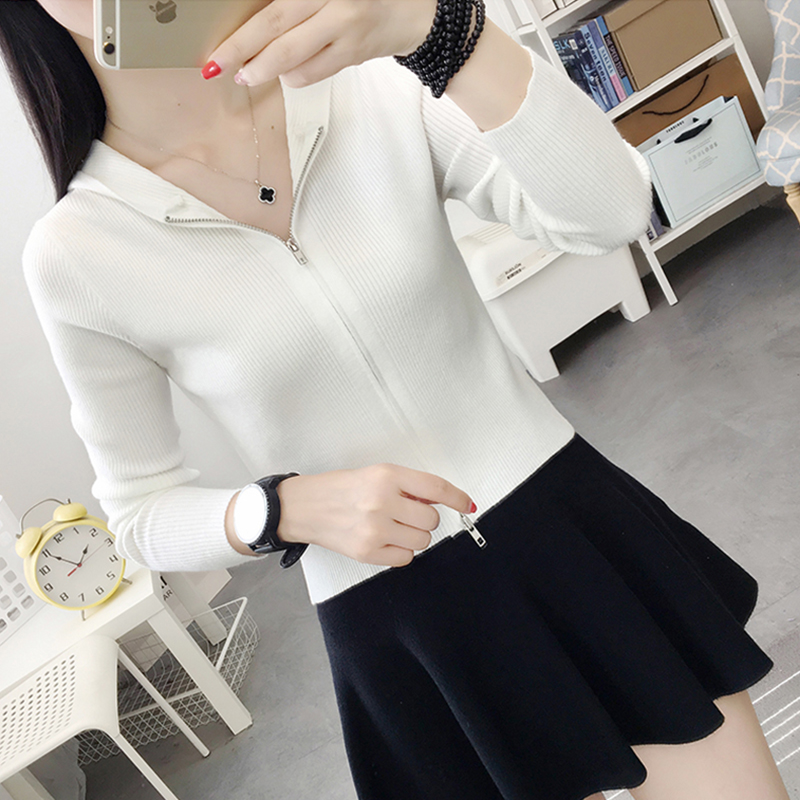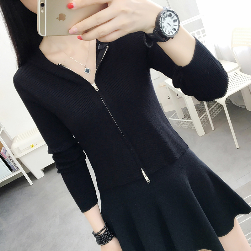 连帽开衫 短款 修身 2023年新款 外套女 针织上衣女高腰配裙子早春秋装