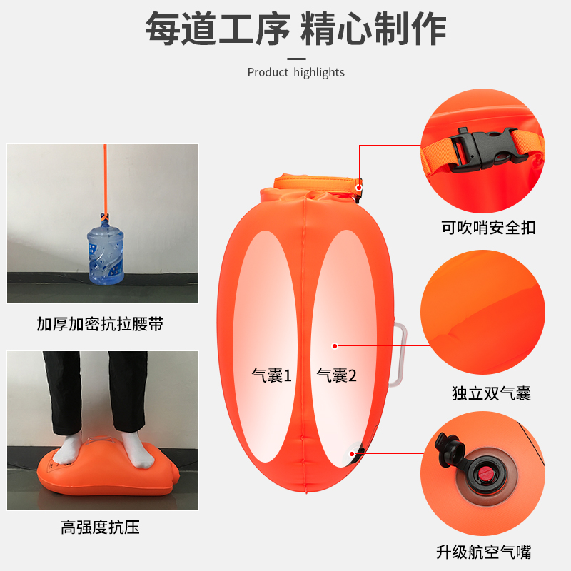 跟屁虫游泳专用双气囊安全救浮标漂浮游泳包成人户外浮漂浮球充气