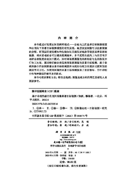 基于非线性融合 社 夜间图像显著目标检测科学出版