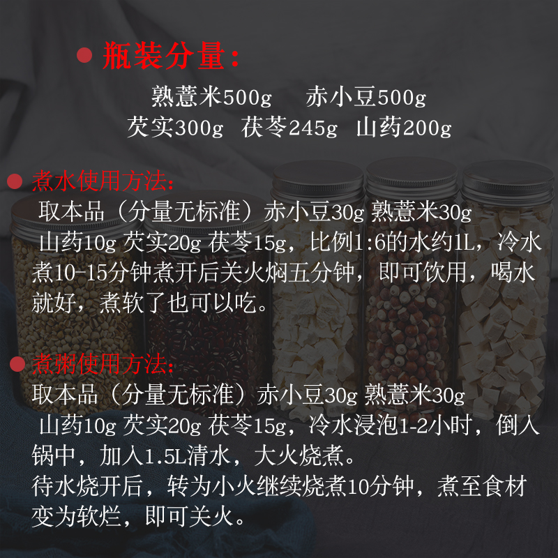 熟薏米红豆茶茯苓山药赤小豆芡实茶煮粥泡水薏仁水薏苡仁现炒