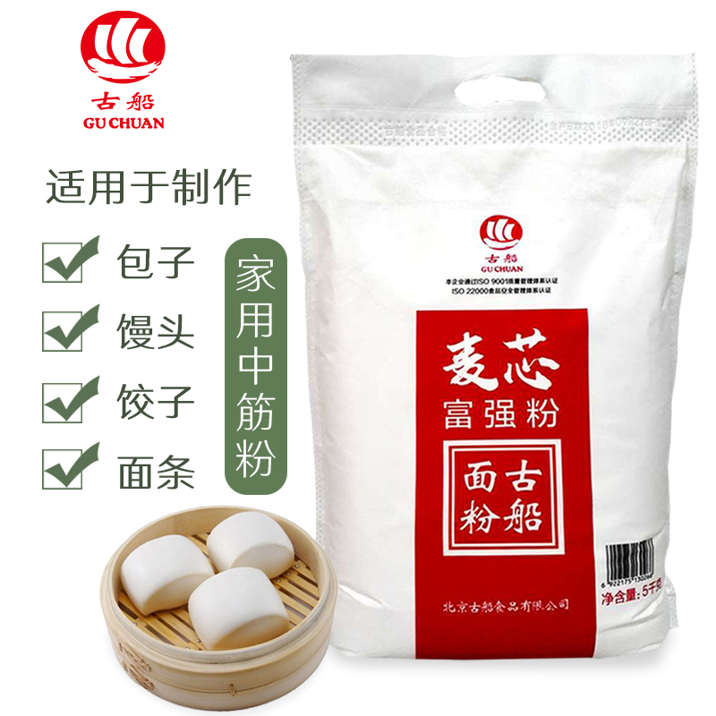 古船面粉麦芯富强粉5kg10斤家用中筋面粉多用途小麦粉馒头面条粉