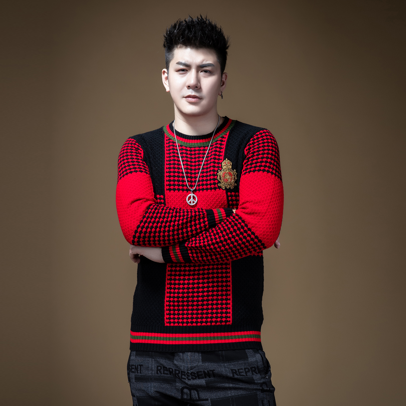 羊毛衫 潮流个性 千鸟格子刺绣宽松慵懒风毛衣男ins港风韩版 BM男士