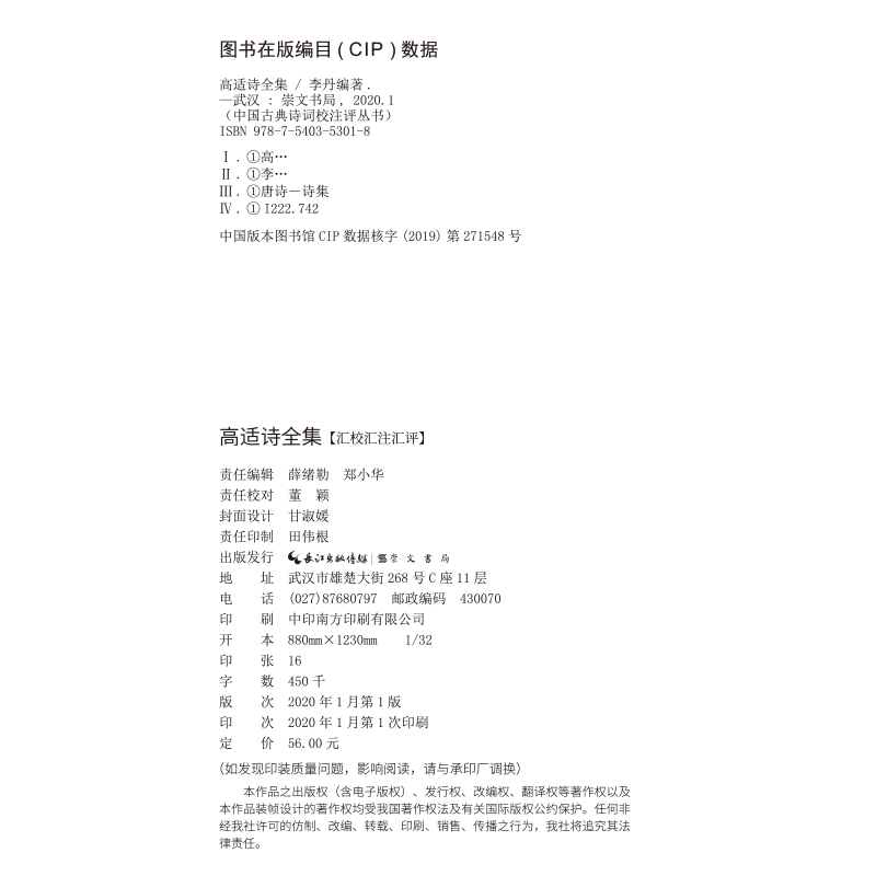 中国文学鉴赏国学经典 中国古典诗词校注评丛书 崇文书局 词书籍 高适诗全集