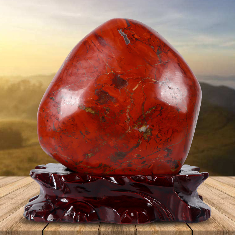 红碧玉原石摆件天然南非鸡血石观赏奇石招财客厅办公室装 饰品礼品