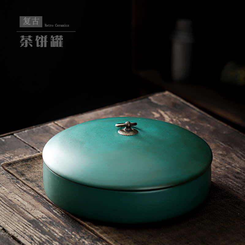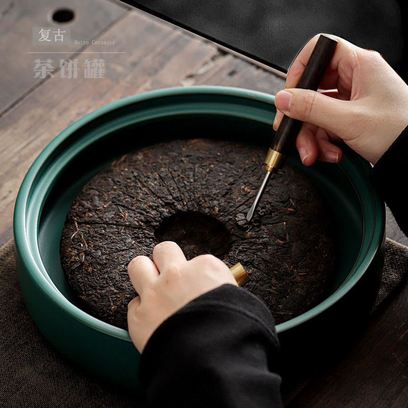 尚岩复古茶叶罐大号家用储存罐普洱茶缸陶瓷密封醒茶罐茶饼收纳罐