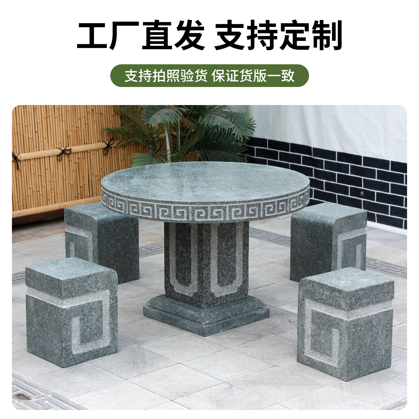 石桌石凳花岗岩天然大理石桌子室外家用中式 花园别墅庭院石头桌椅