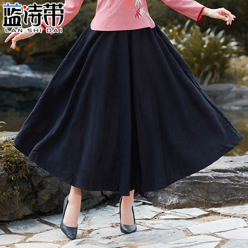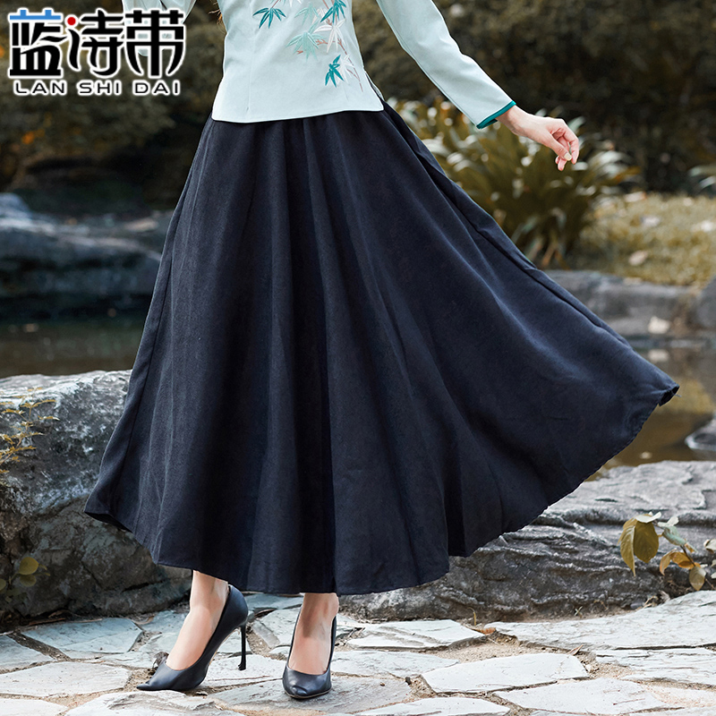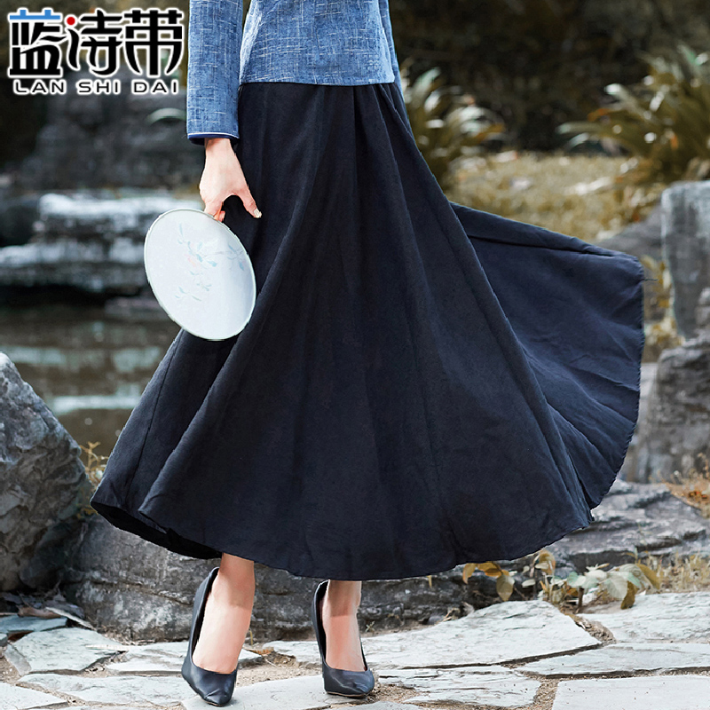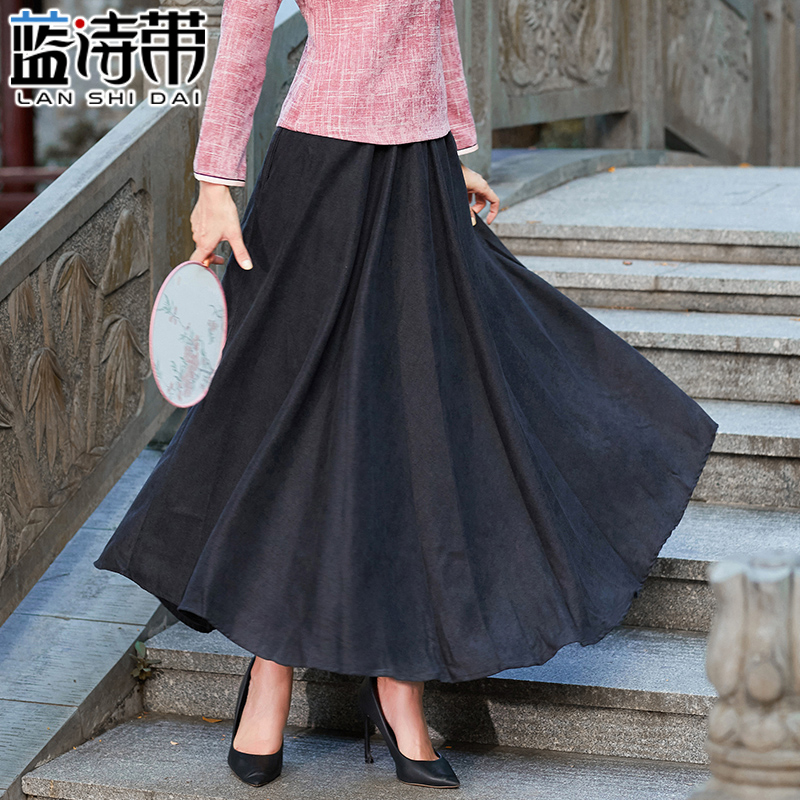 2024新款 磨毛绒高腰半身裙秋冬女a字大摆长裙 纤丝绒百褶裙中长款