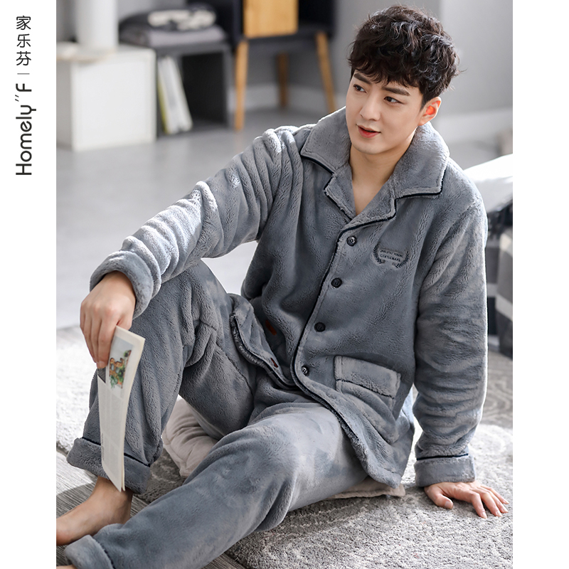 珊瑚绒睡衣男冬季 套装 加厚加绒家居服春秋款 法兰绒男士 大码 秋冬款